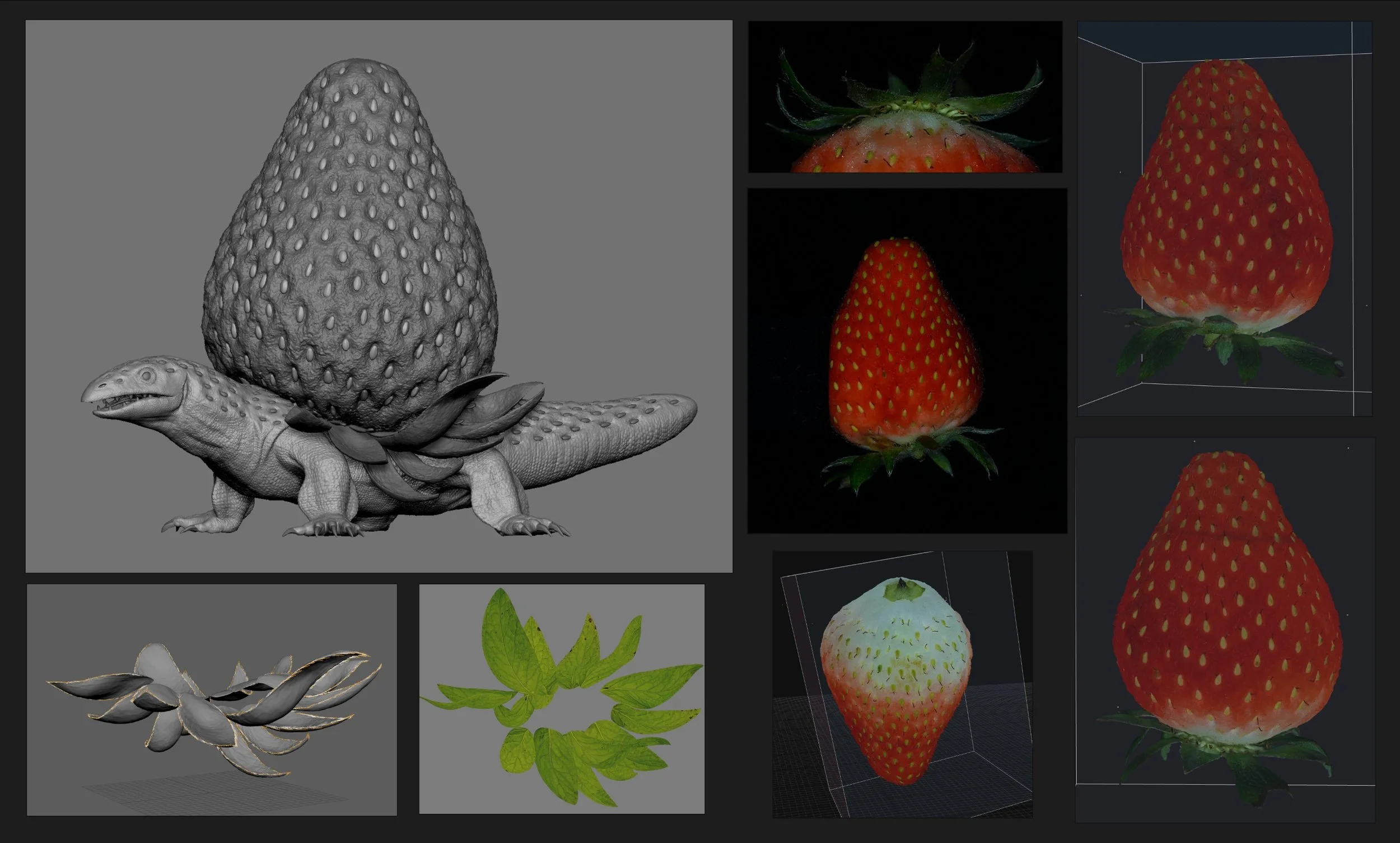 A 3D interpretation of the Strawbela creature designed by @s_kumako, from the book “新ベジタリオン図鑑”. Please check out other クマコロさん’s amazing work at https://x.com/s_kumaco?s=20